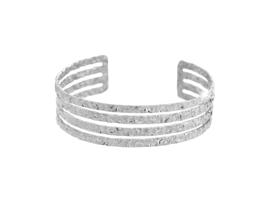Masivní ocelový náramek čtyři řady pomačkaný bez krystalů