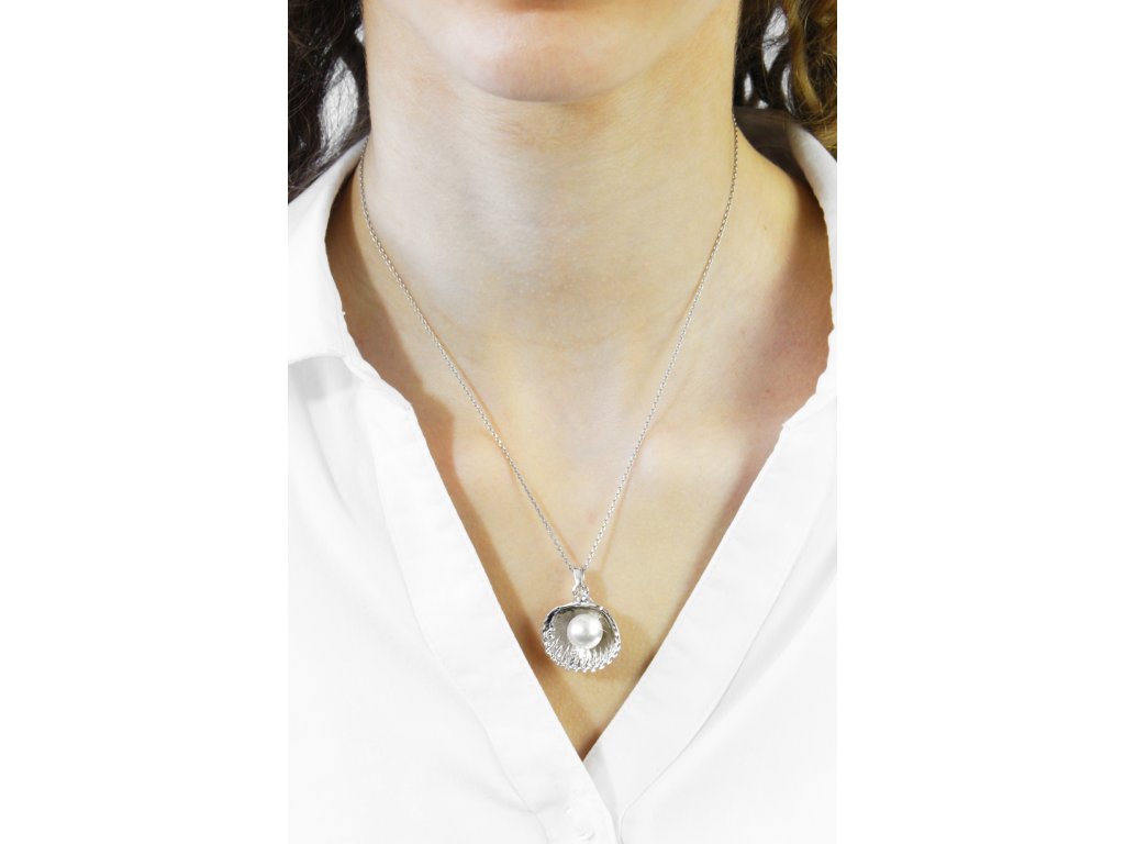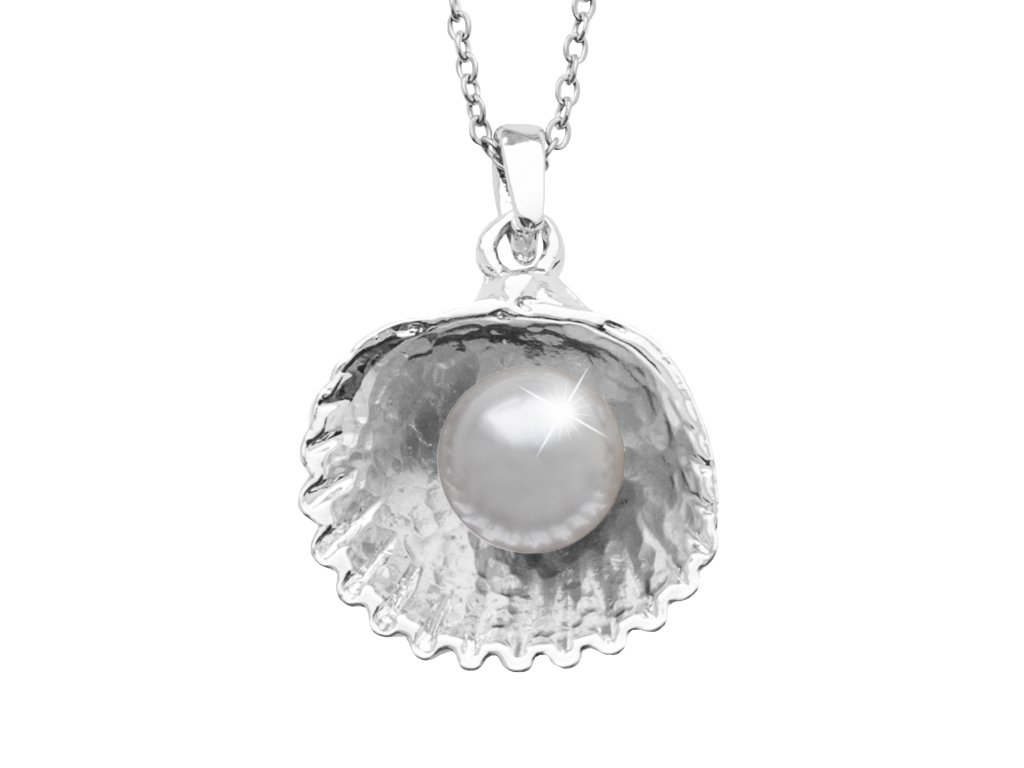 Náhrdelník z bižuterní slitiny mušle s perlou Swarovski White