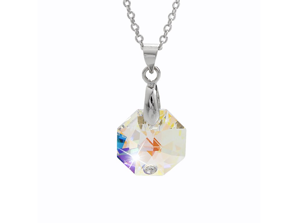 Náhrdelník z bižuterní slitiny samostatný osmiúhelníkový krystal Swarovski AB