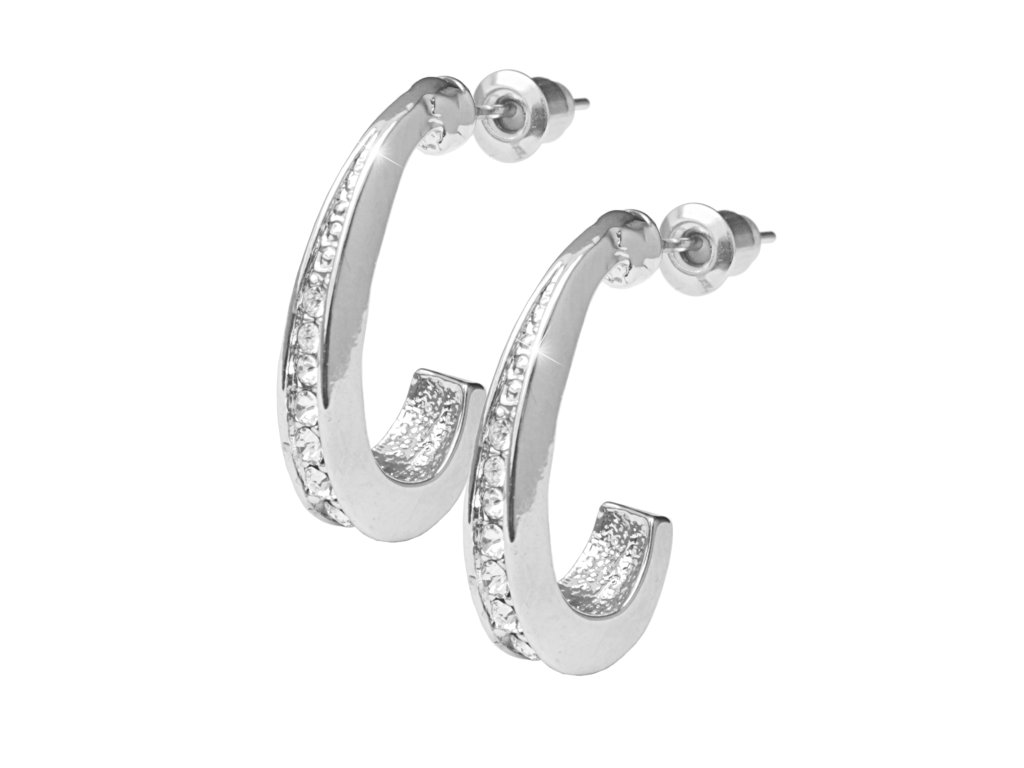 Náušnice kreole z bižuterní slitiny podlouhlé a rozšiřující se s krystaly Swarovski Crystal
