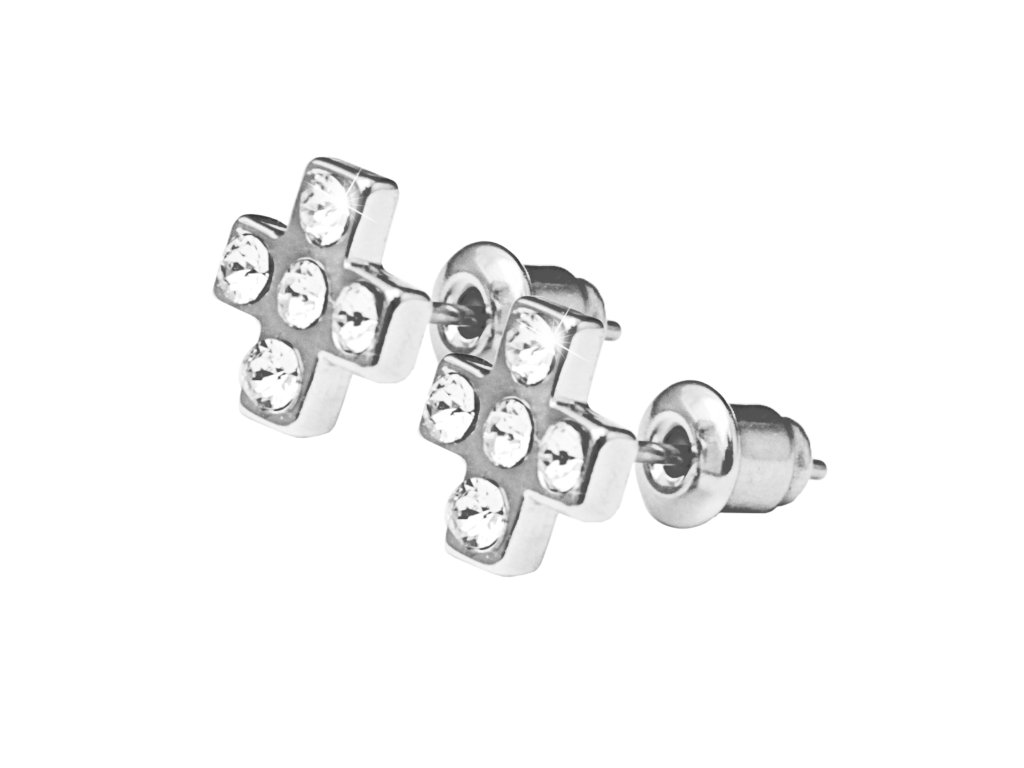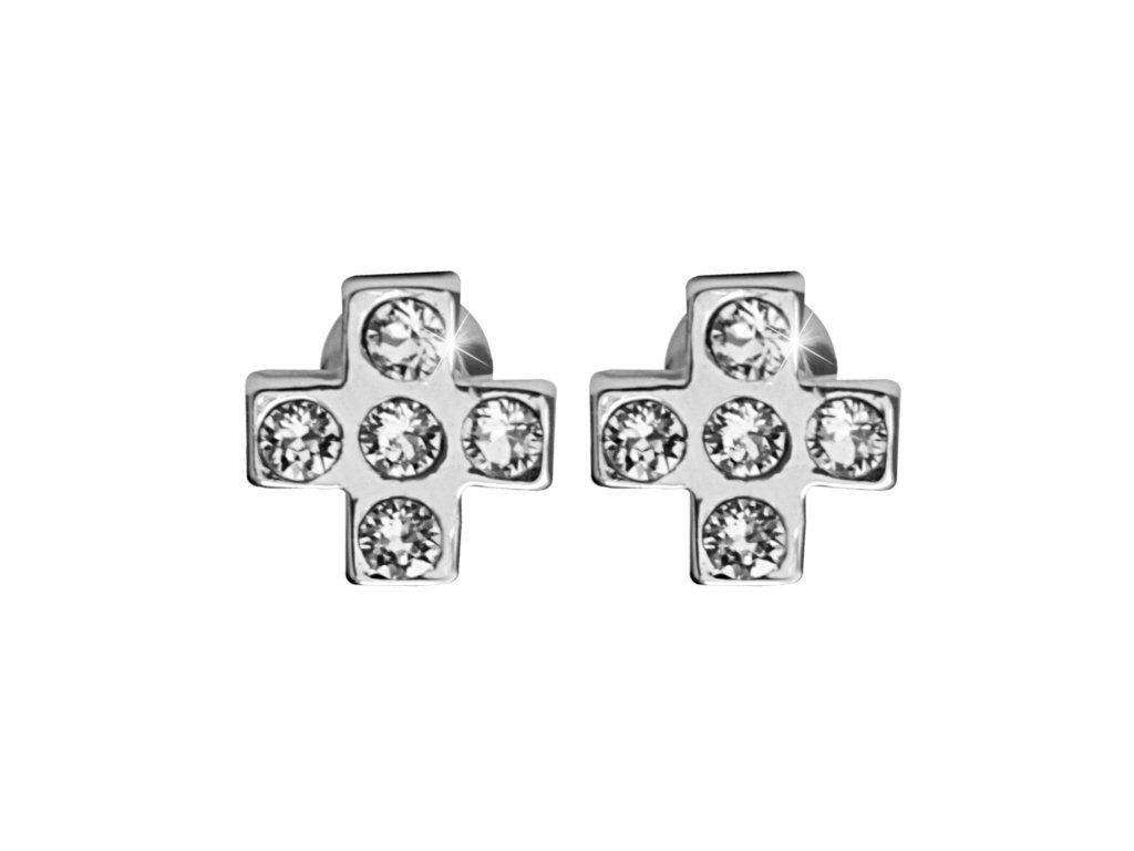 Náušnice puzety z bižuterní slitiny křížek s pěti krystaly Swarovski Crystal