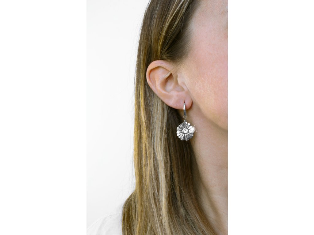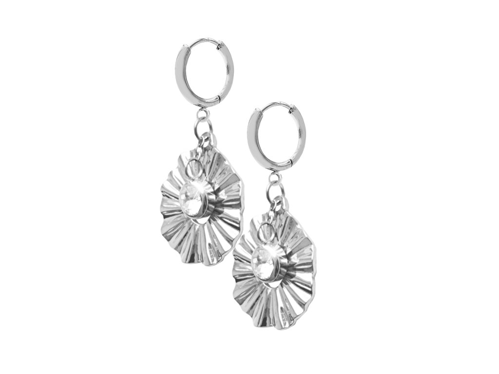 Ocelové náušnice kruhy s vlnitým květem zdobené krystalem Swarovski Crystal