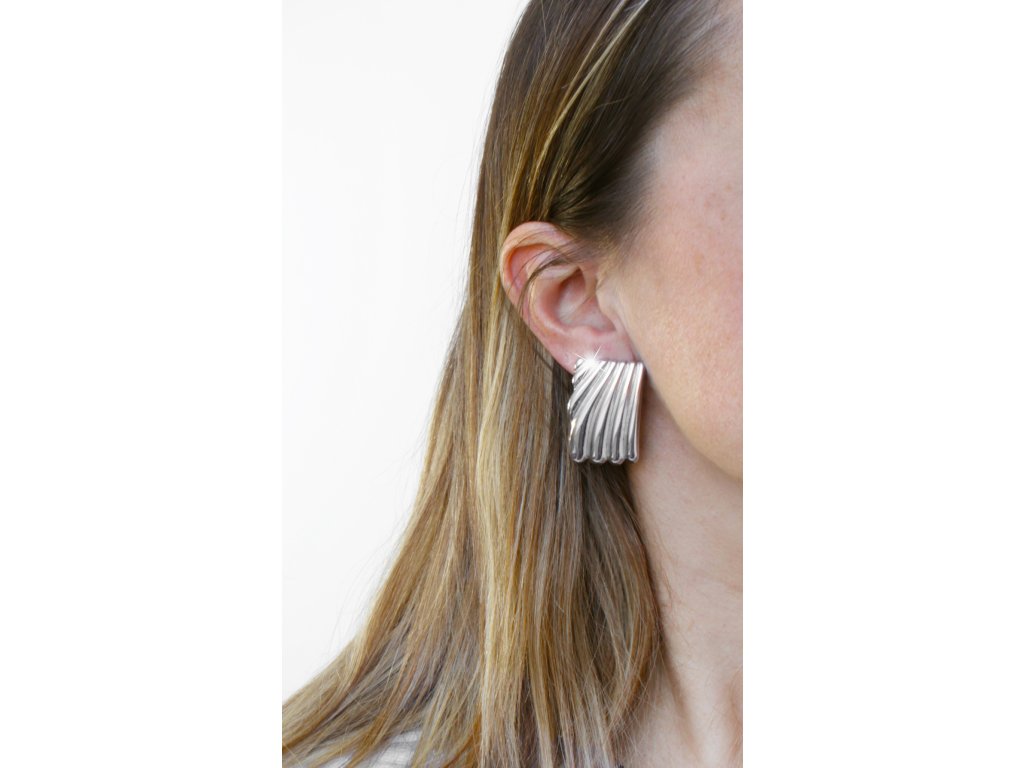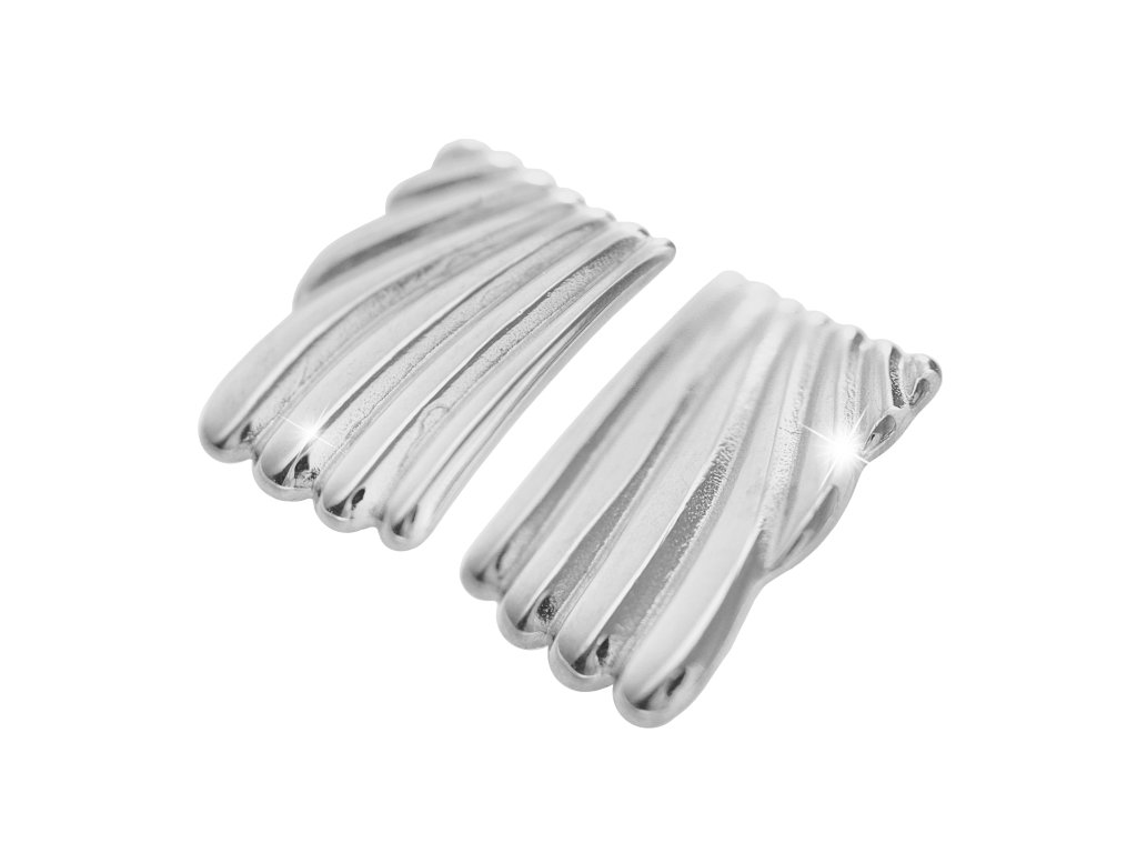Ocelové náušnice puzety masivní obdélník poskládaný ze zvlněných kapek