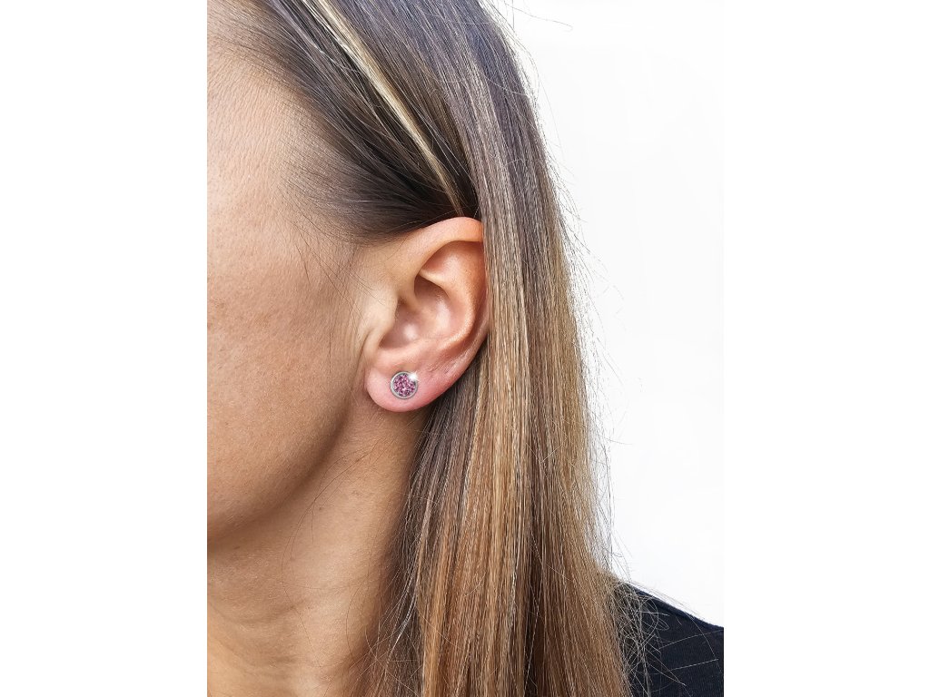 Ocelové náušnice puzety mini lentilky s krystaly Preciosa Light Rose