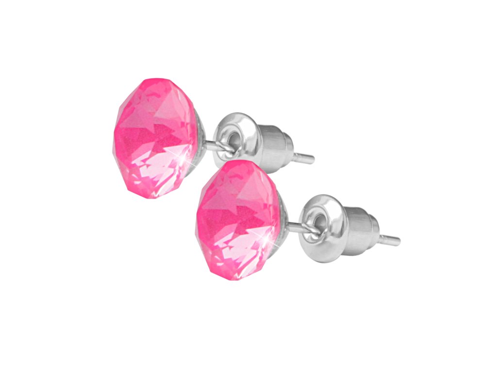Ocelové náušnice puzety samostatný velký krystal Swarovski Electric Pink