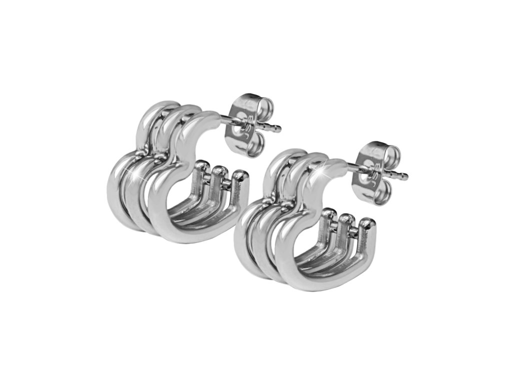 Ocelové náušnice puzety trojité srdce bez krystalů