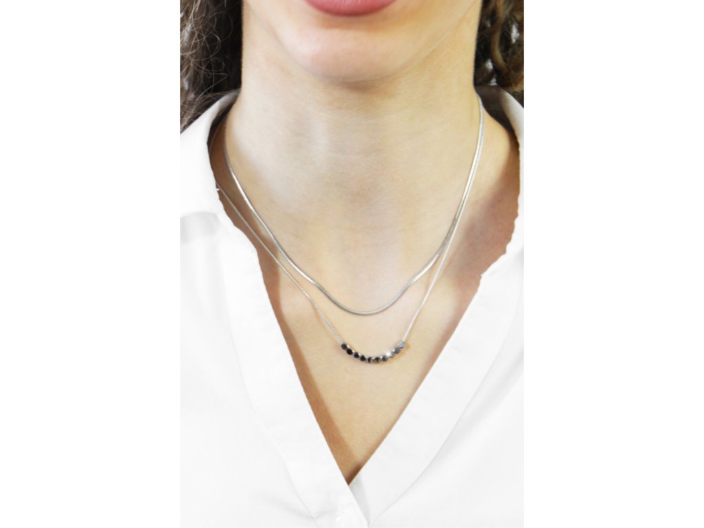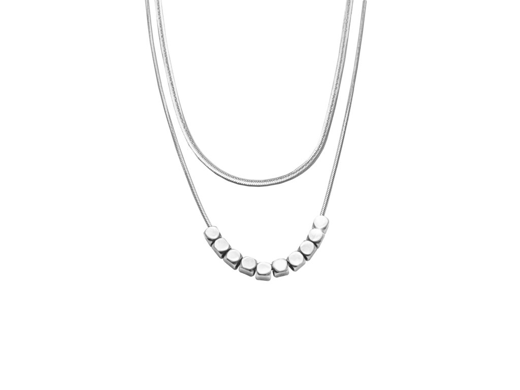 Ocelový náhrdelník dva řetízky a drobné kostičky bez krystalů