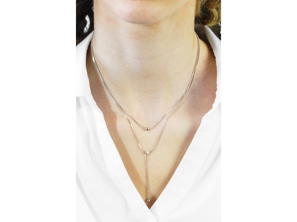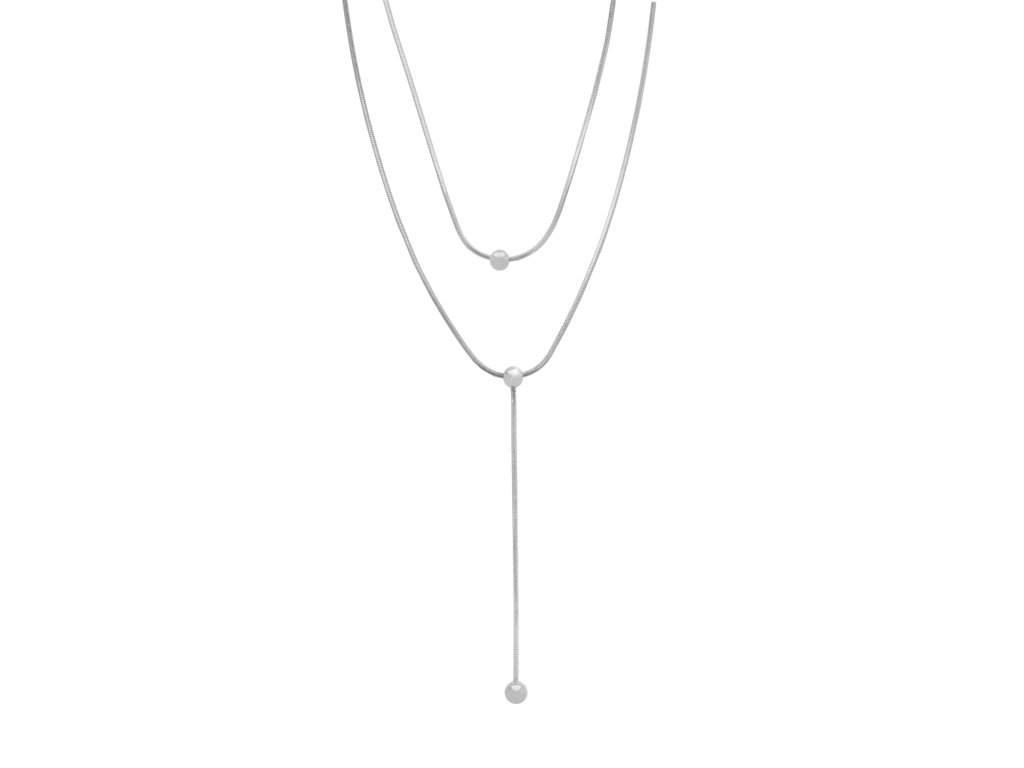 Ocelový náhrdelník dva řetízky a tři kuličky bez krystalů