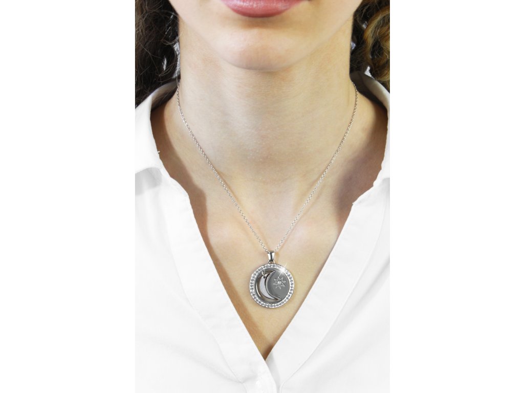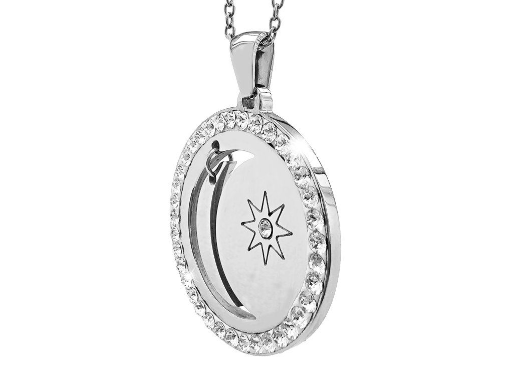 Ocelový náhrdelník slunce a pohyblivý měsíc s krystaly Swarovski Crystal