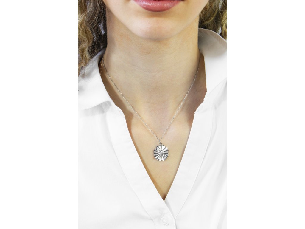 Ocelový náhrdelník vlnitý květ s krystalem Swarovski Crystal