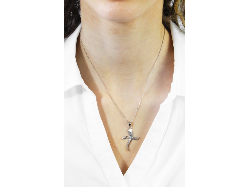 Ocelový náhrdelník zvlněný kříž bez krystalů