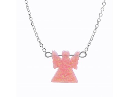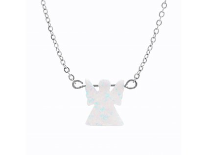 Ocelový náramek s přívěskem anděla ze syntetického bílého opálu