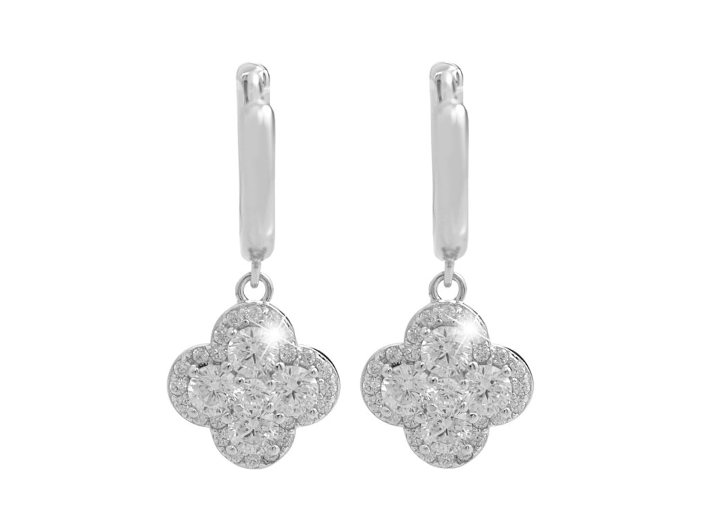Stříbrné náušnice klapky s čtyřlístkem z Kubických zirkonů Crystal (Stříbro 925/1000)