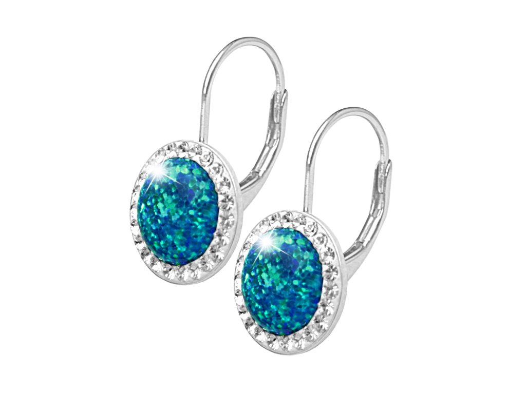 Stříbrné náušnice klapky s kulatým opálem a krystaly Swarovski Pas velké (Stříbro 925/1000)