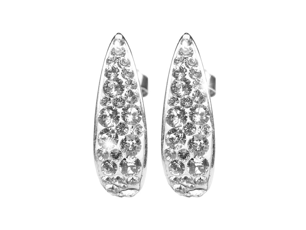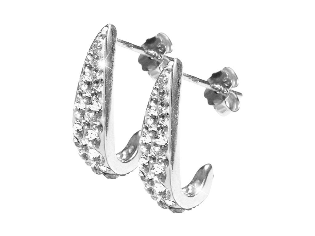 Stříbrné náušnice kreole podlouhlé vyplněné krystaly Swarovski Crystal (Stříbro 925/1000)