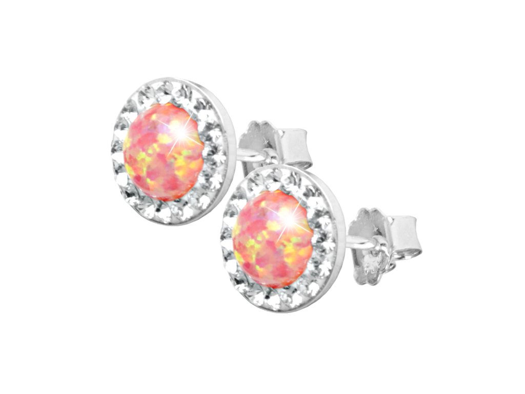 Stříbrné náušnice puzety s kulatým opálem a krystaly Swarovski Peach Pastel malé (Stříbro 925/1000)