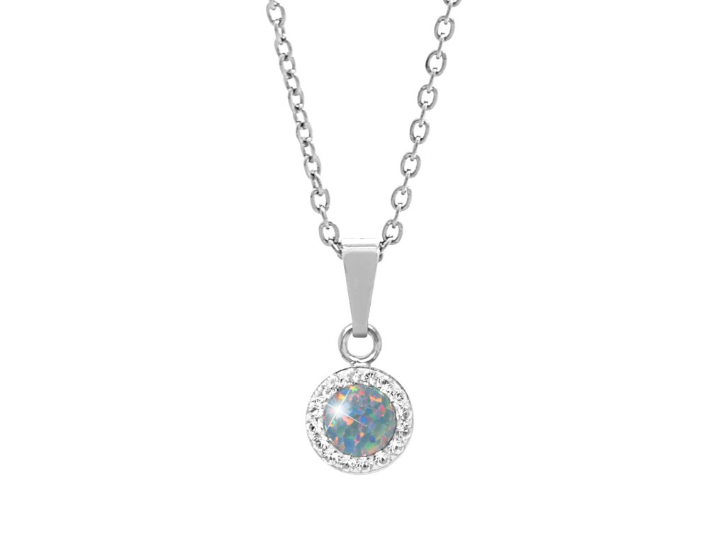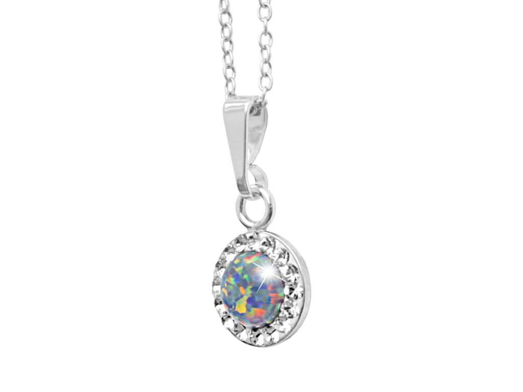 Stříbrný náhrdelník s kulatým opálem a krystaly Swarovski Australian Shadow malý (Stříbro 925/1000)