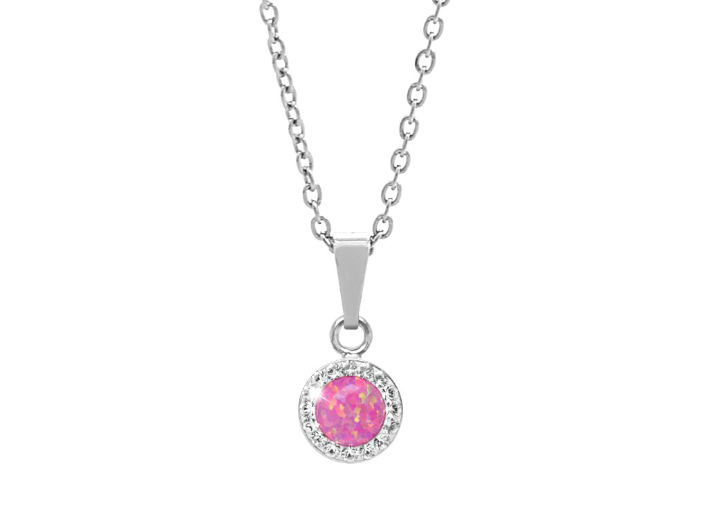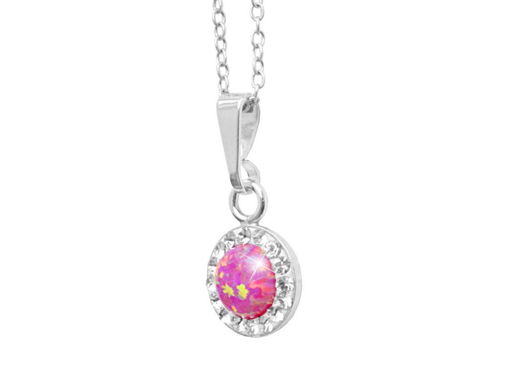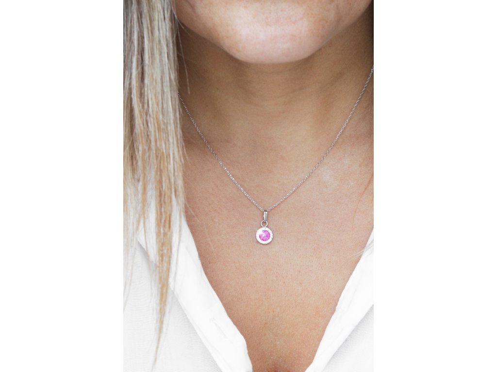 Stříbrný náhrdelník s kulatým opálem a krystaly Swarovski Light Fuchsia malý (Stříbro 925/1000)