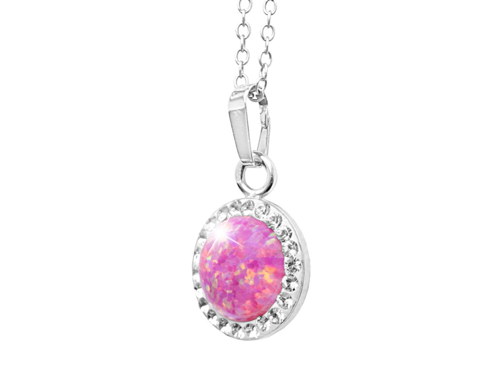 Stříbrný náhrdelník s kulatým opálem a krystaly Swarovski Light Fuchsia velký (Stříbro 925/1000)