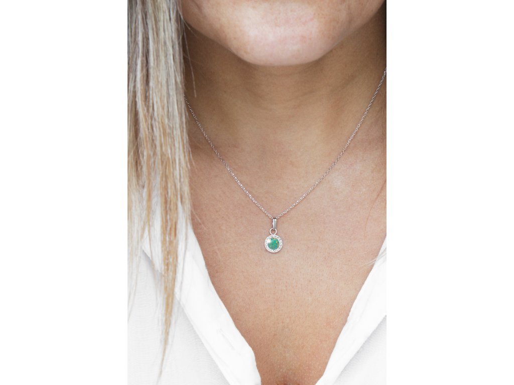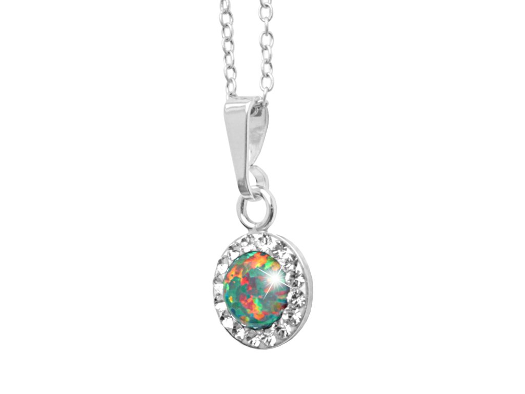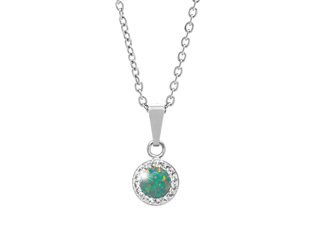 Stříbrný náhrdelník s kulatým opálem a krystaly Swarovski Mix Green malý (Stříbro 925/1000)