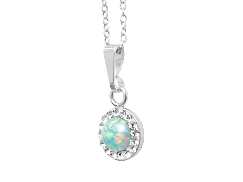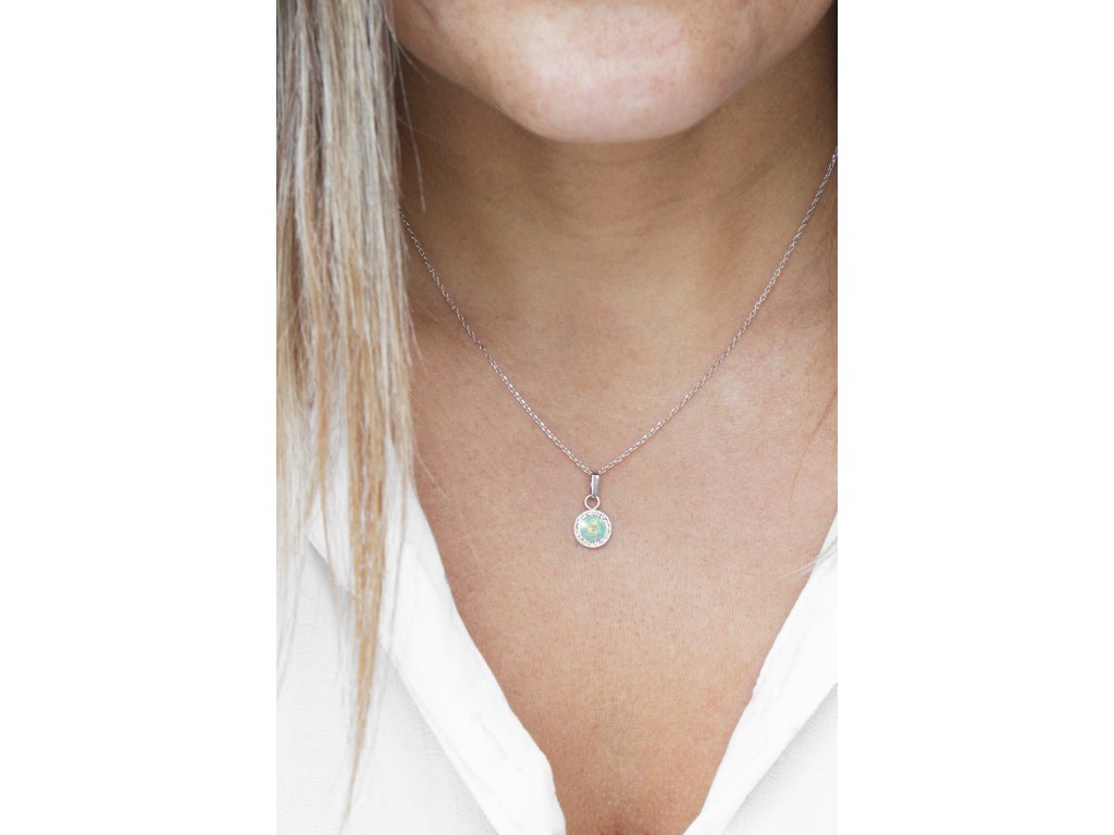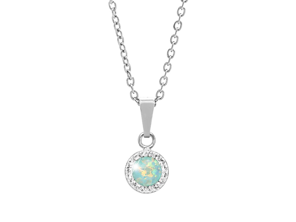 Stříbrný náhrdelník s kulatým opálem a krystaly Swarovski Pastel Mint Green malý (Stříbro 925/1000)