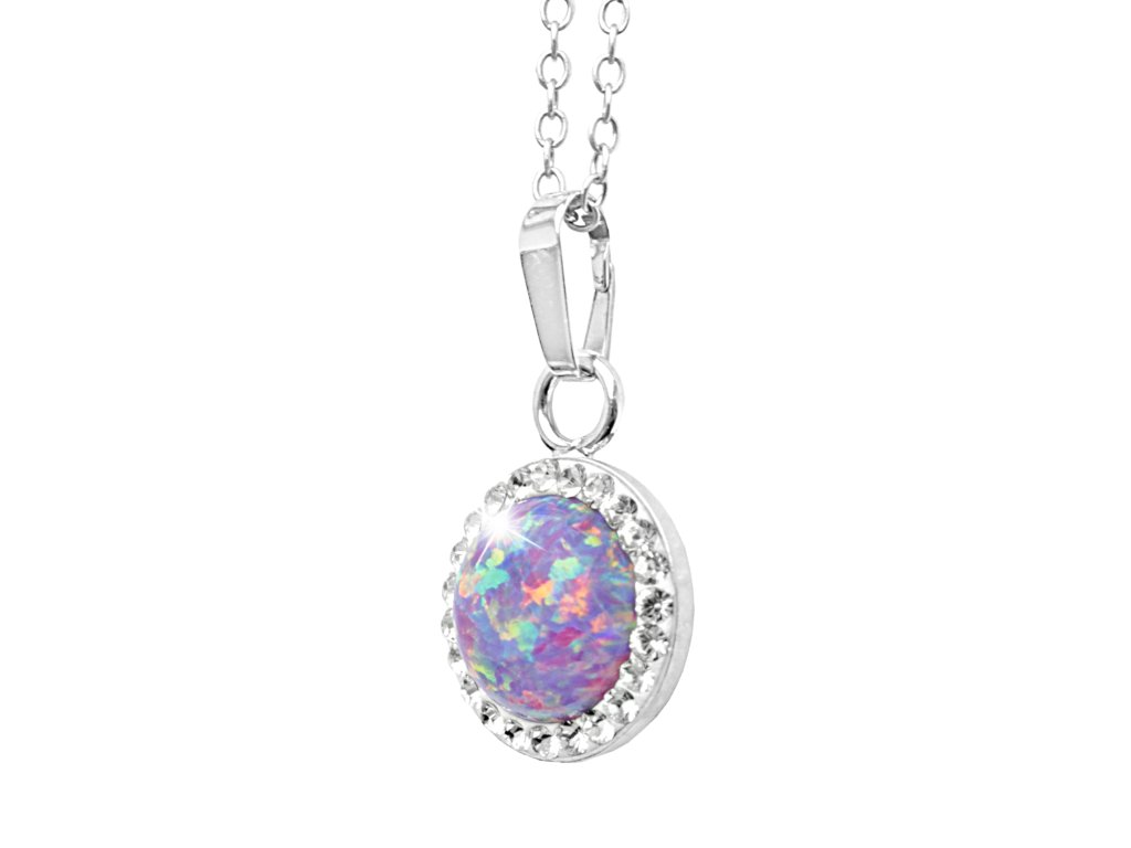 Stříbrný náhrdelník s kulatým opálem a krystaly Swarovski Violet velký (Stříbro 925/1000)