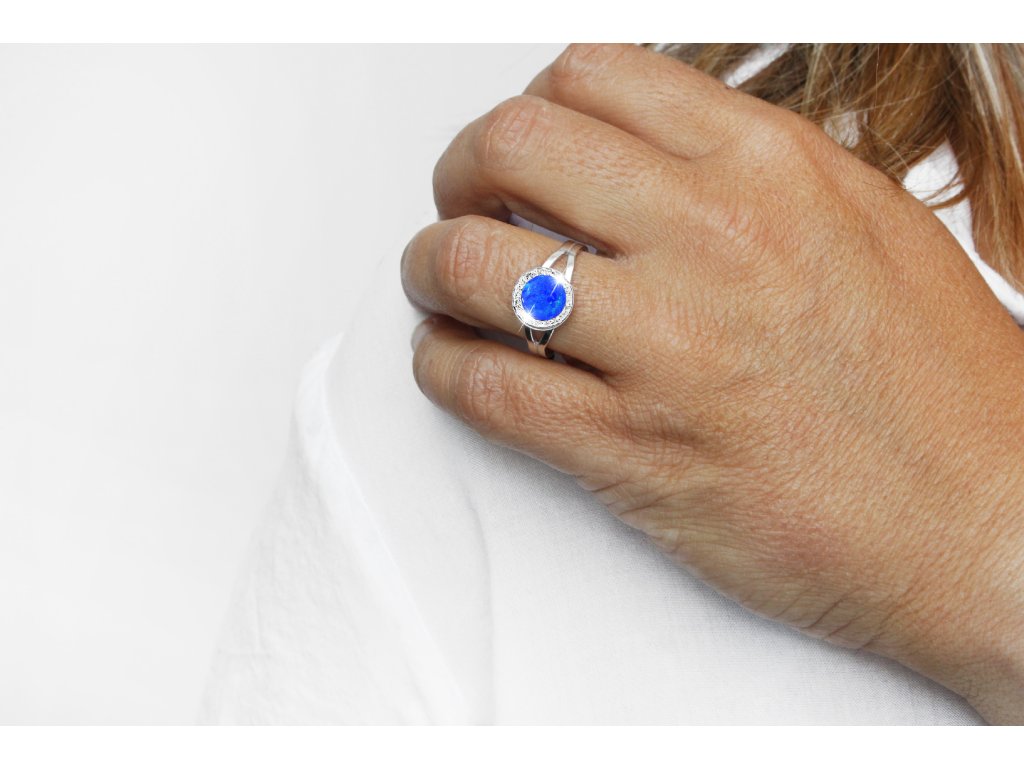 Stříbrný prsten s kulatým opálem a krystaly Swarovski Dark Blue velký (Stříbro 925/1000)