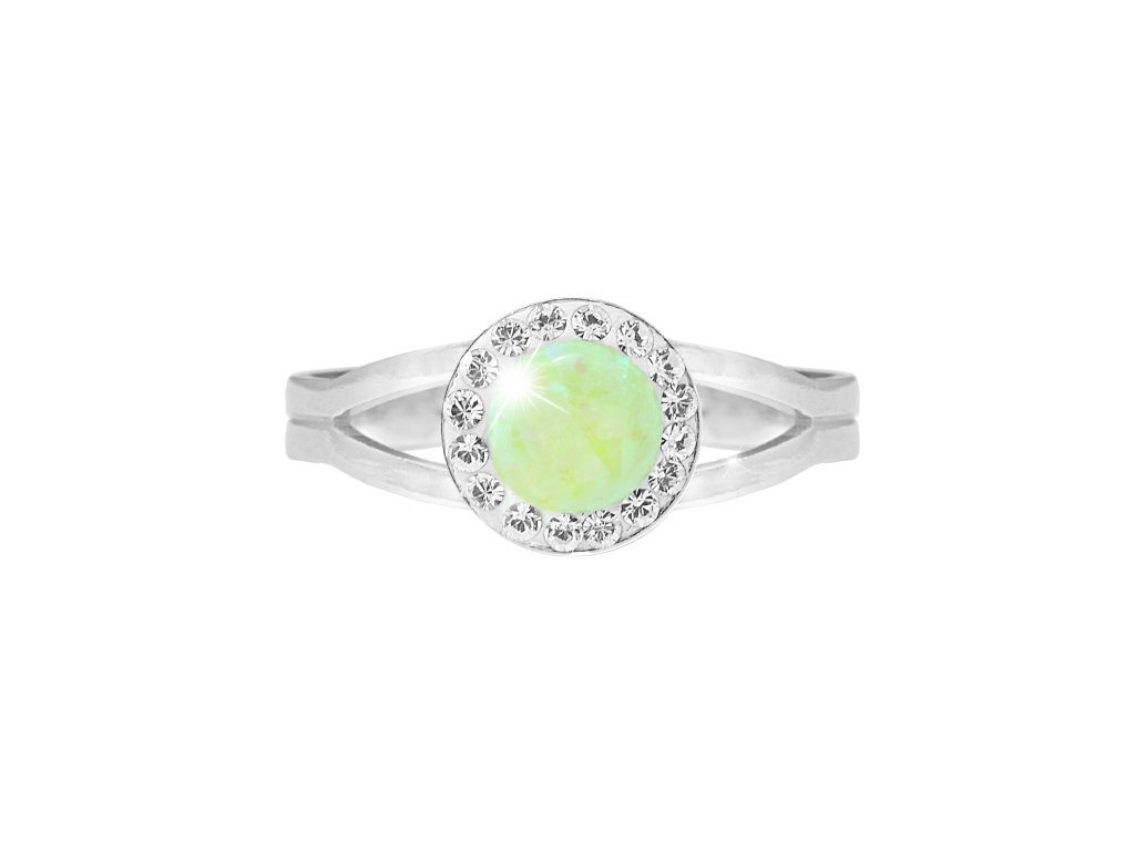 Stříbrný prsten s kulatým opálem a krystaly Swarovski Green malý (Stříbro 925/1000)