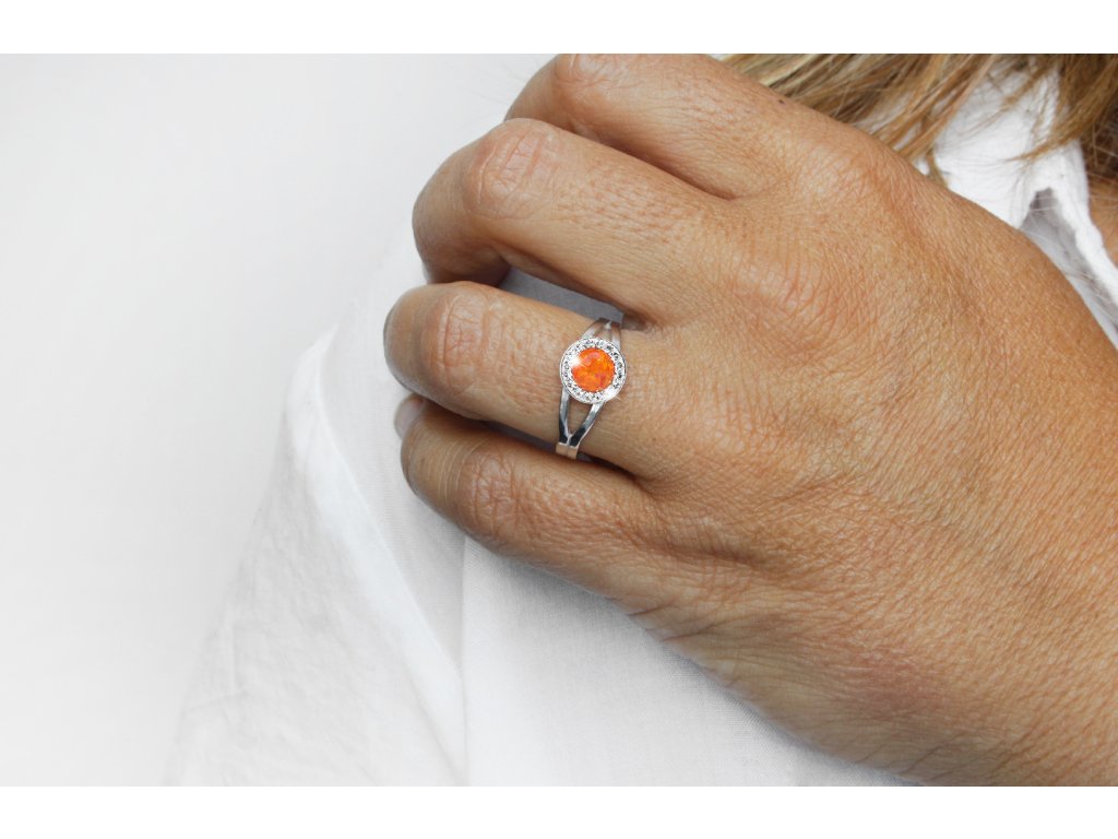 Stříbrný prsten s kulatým opálem a krystaly Swarovski Orange malý (Stříbro 925/1000)