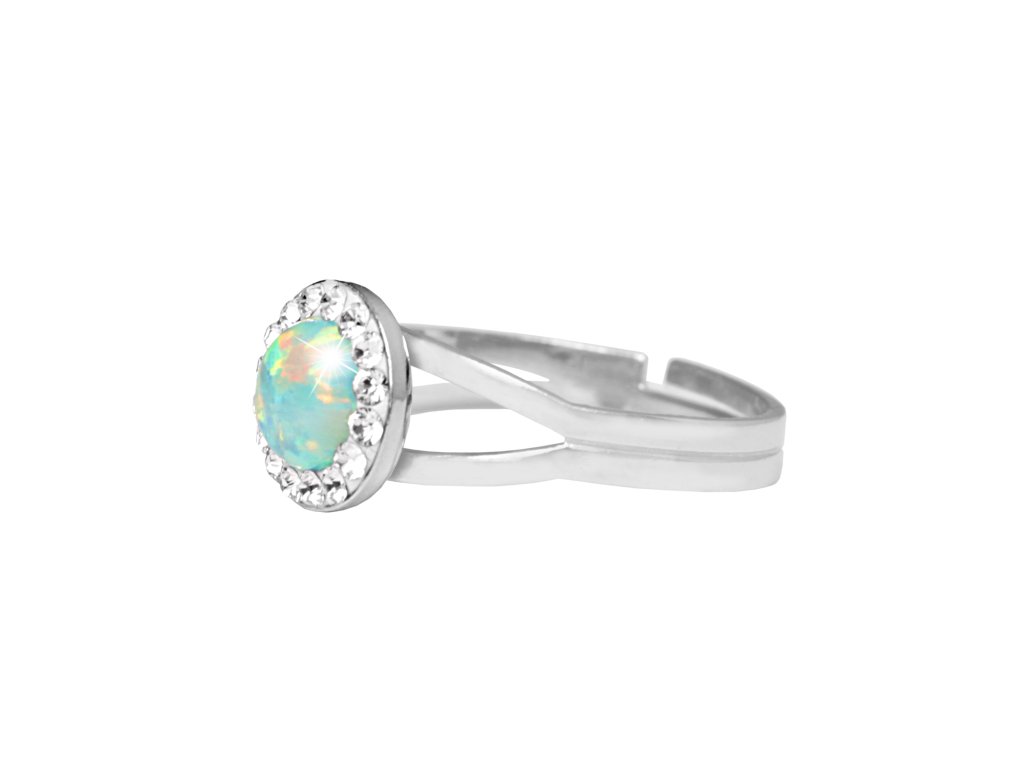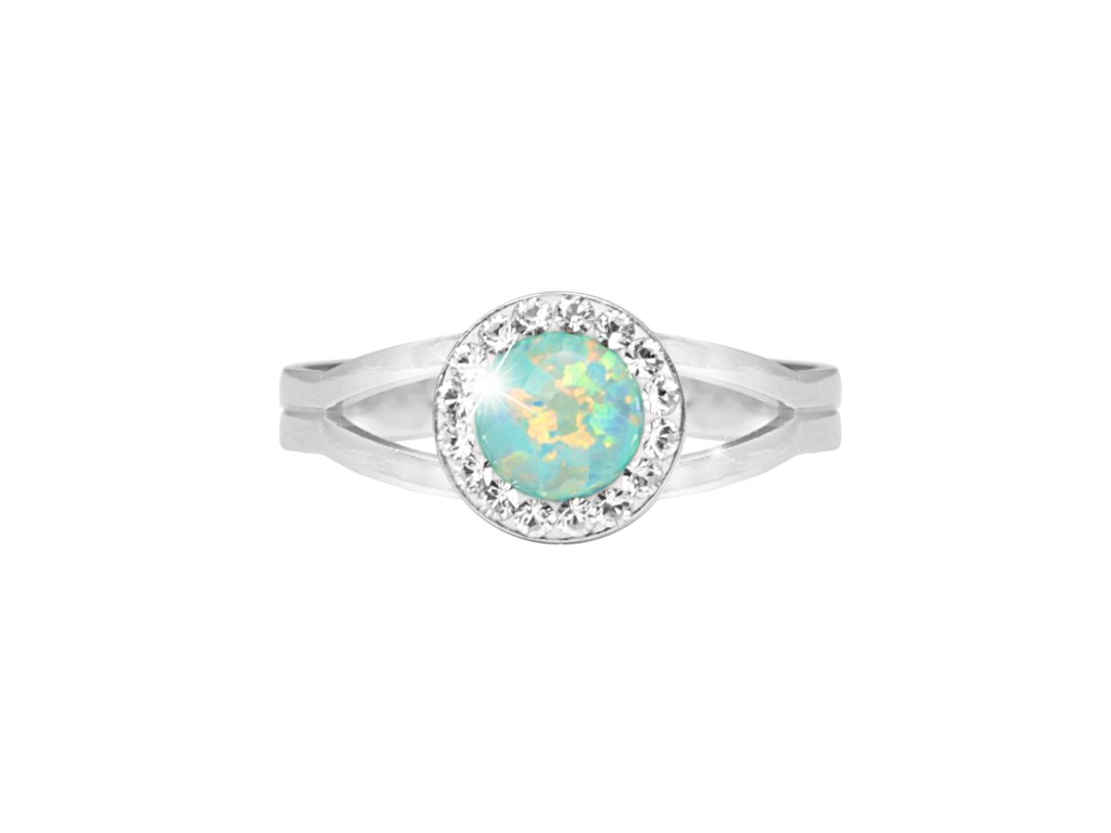 Stříbrný prsten s kulatým opálem a krystaly Swarovski Pastel Mint Green malý (Stříbro 925/1000)