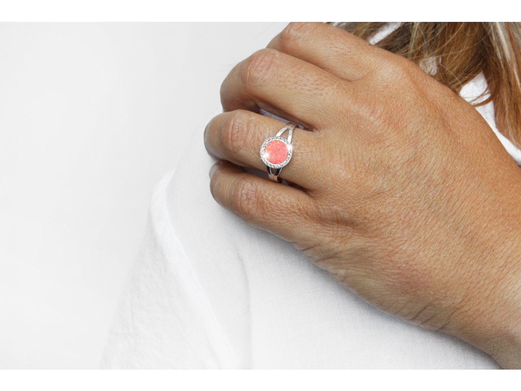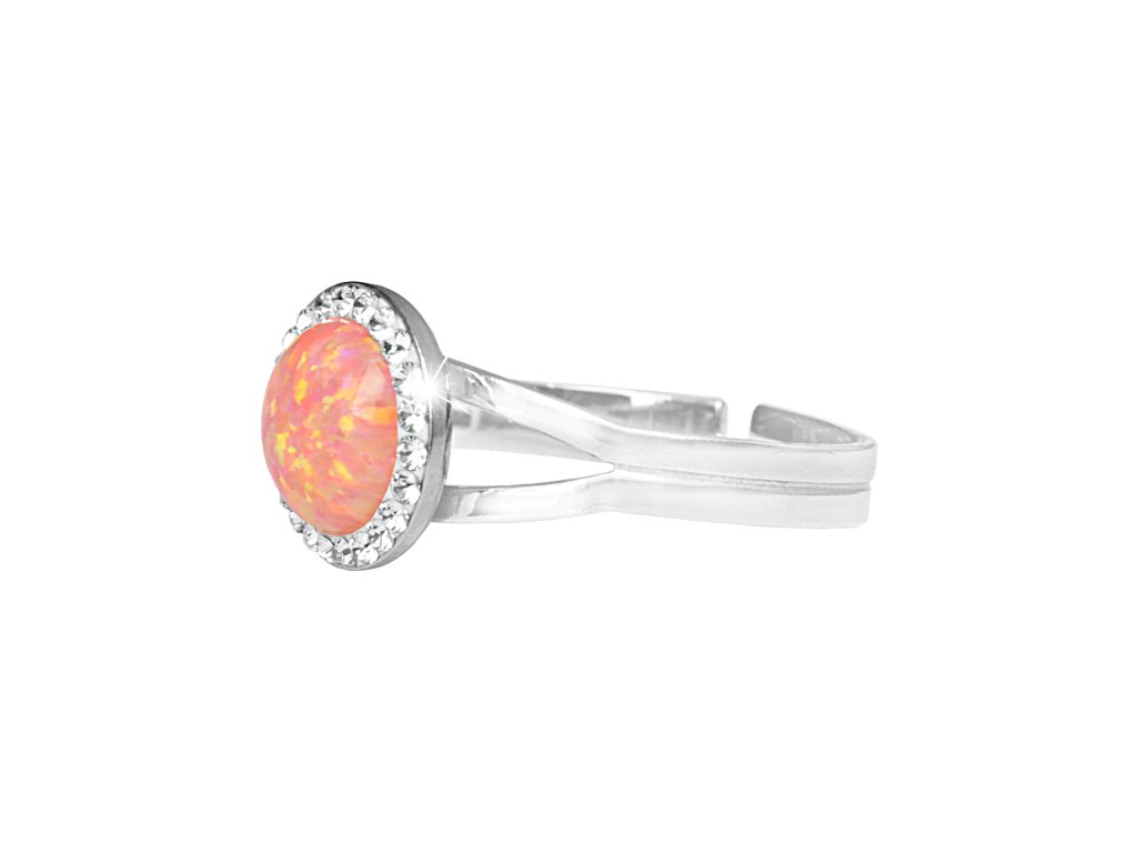 Stříbrný prsten s kulatým opálem a krystaly Swarovski Peach Pastel velký (Stříbro 925/1000)