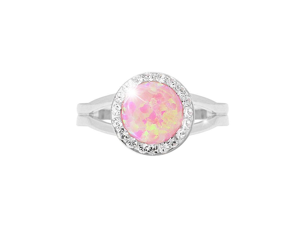 Stříbrný prsten s kulatým opálem a krystaly Swarovski Rose velký (Stříbro 925/1000)
