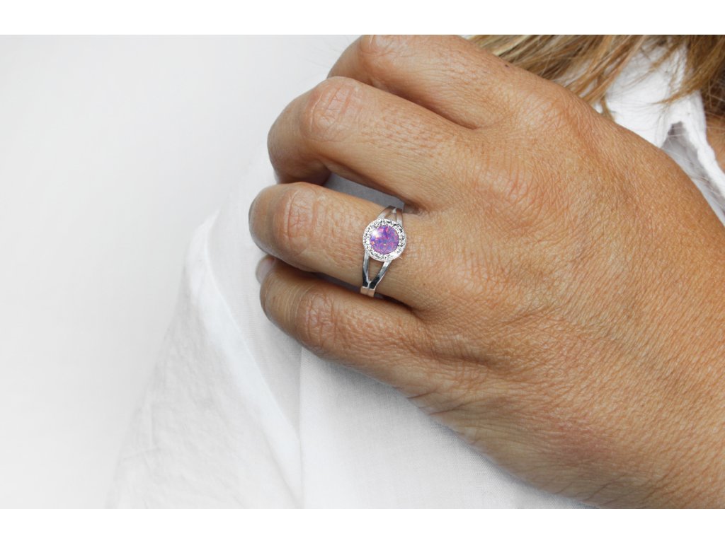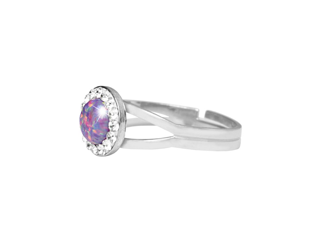 Stříbrný prsten s kulatým opálem a krystaly Swarovski Violet malý (Stříbro 925/1000)