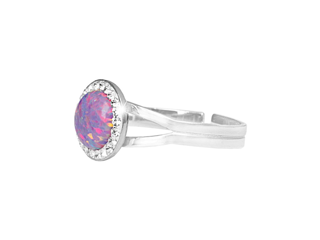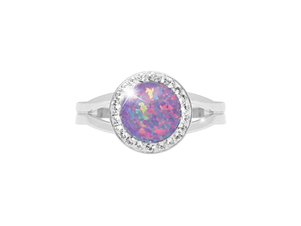 Stříbrný prsten s kulatým opálem a krystaly Swarovski Violet velký (Stříbro 925/1000)