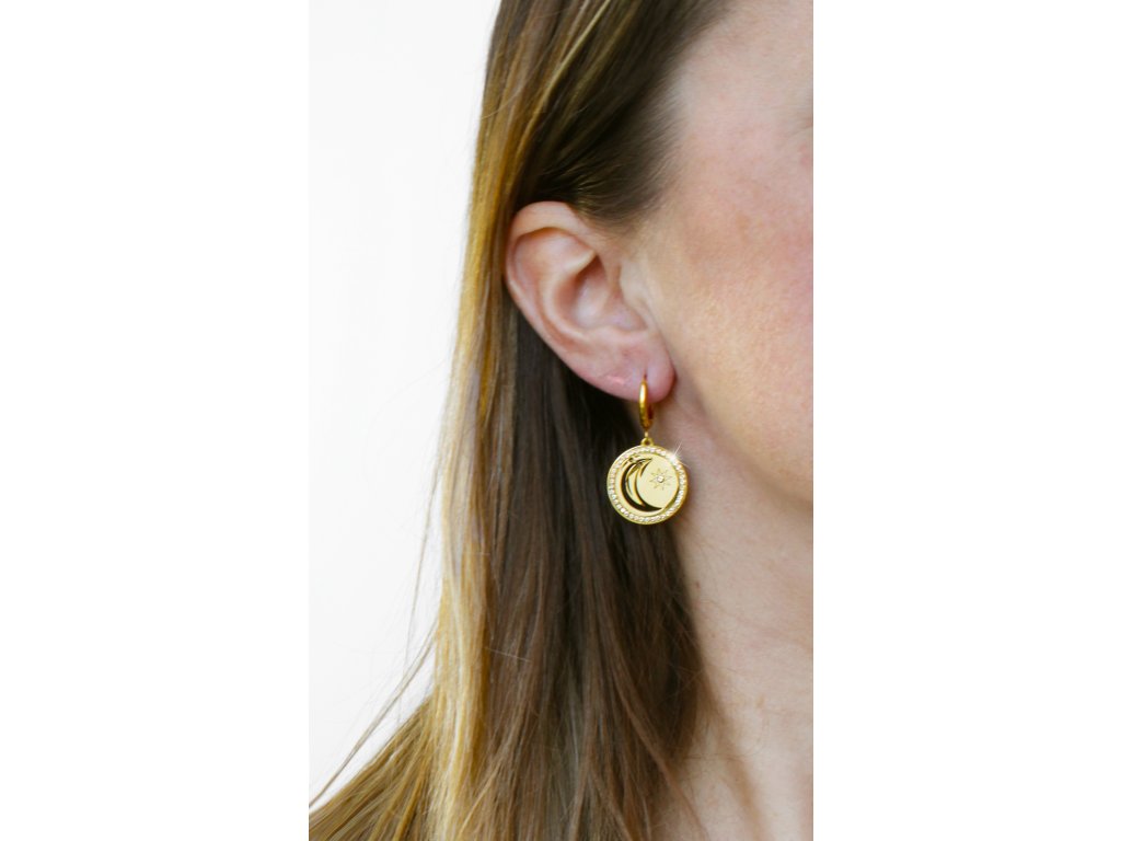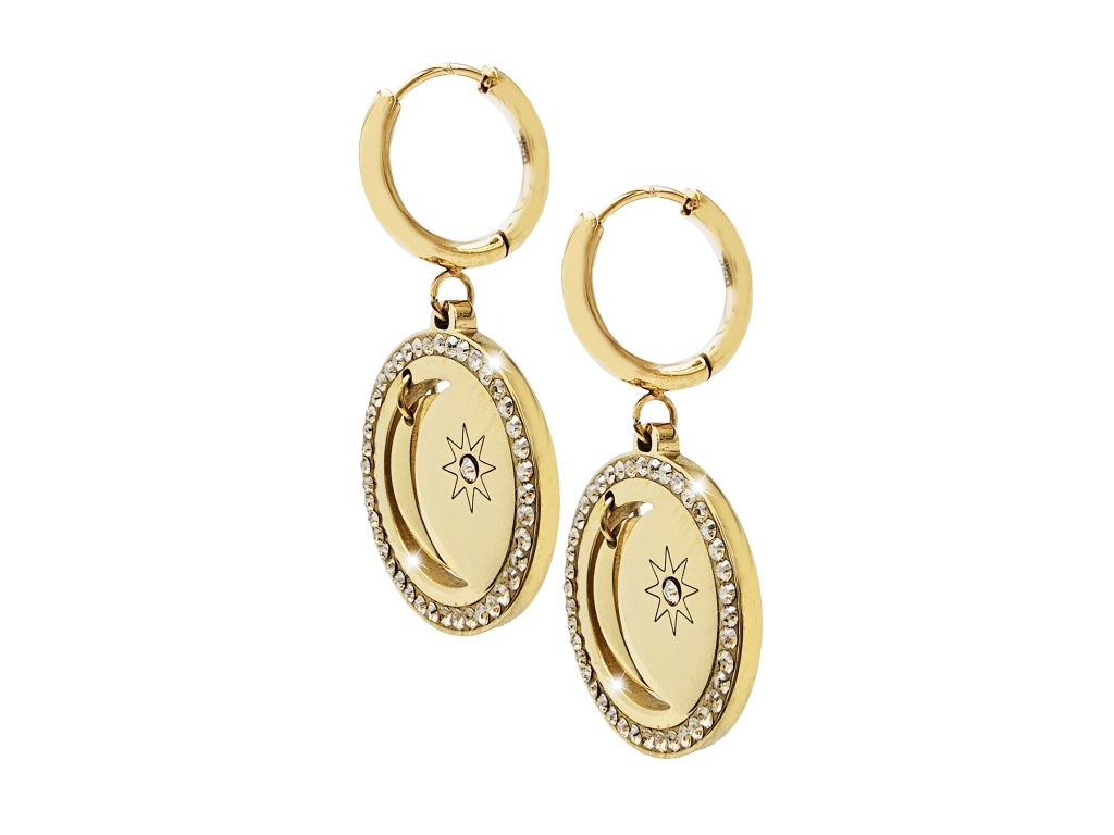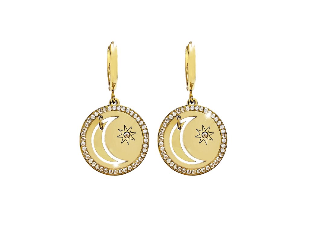 Zlaté ocelové náušnice kruhy slunce a pohyblivý měsíc s krystaly Swarovski Golden Shadow