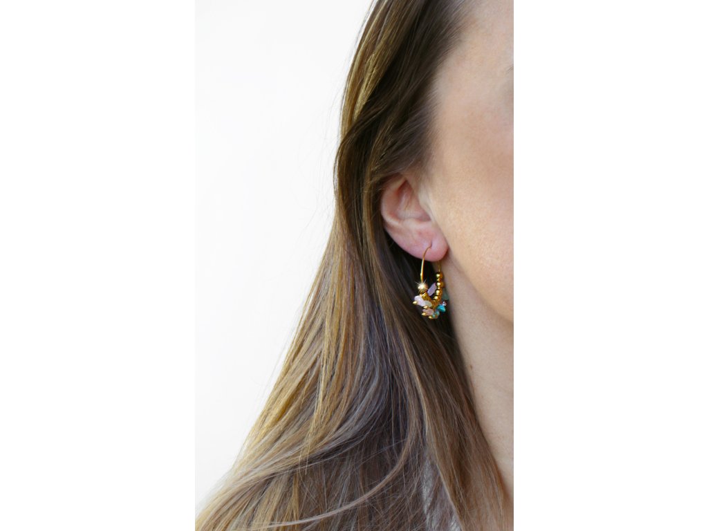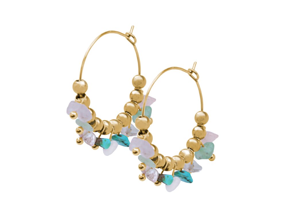 Zlaté ocelové náušnice kruhy zdobené pravými kameny Multi