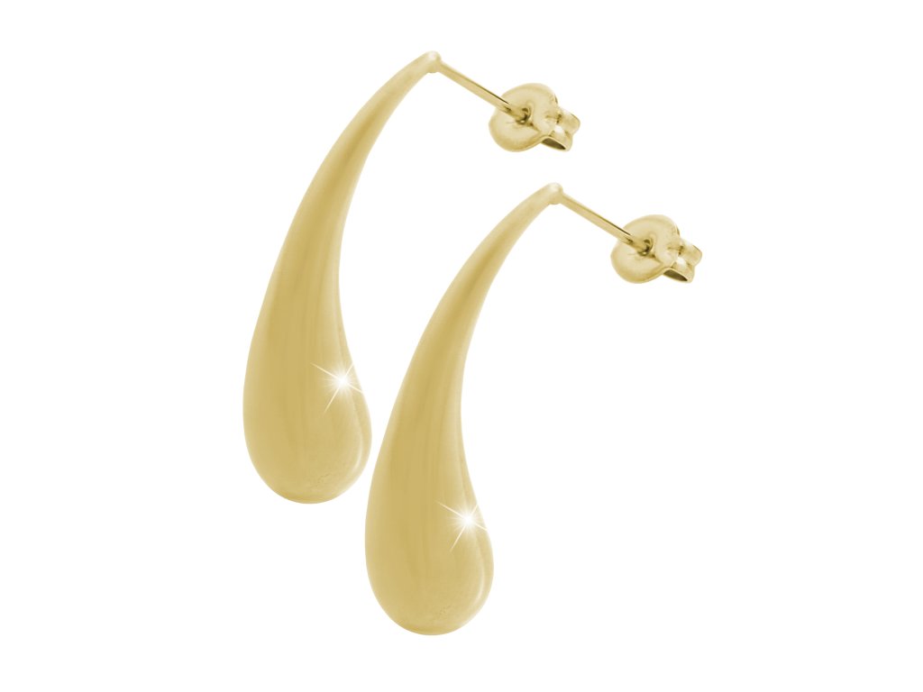 Zlaté ocelové náušnice puzety podlouhlé prohnuté klapky bez krystalů