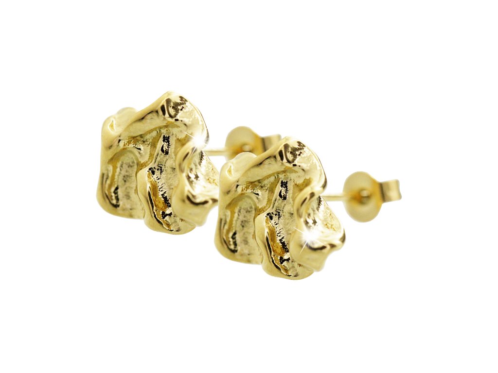 Zlaté ocelové náušnice puzety se zmačkaným efektem bez krystalů