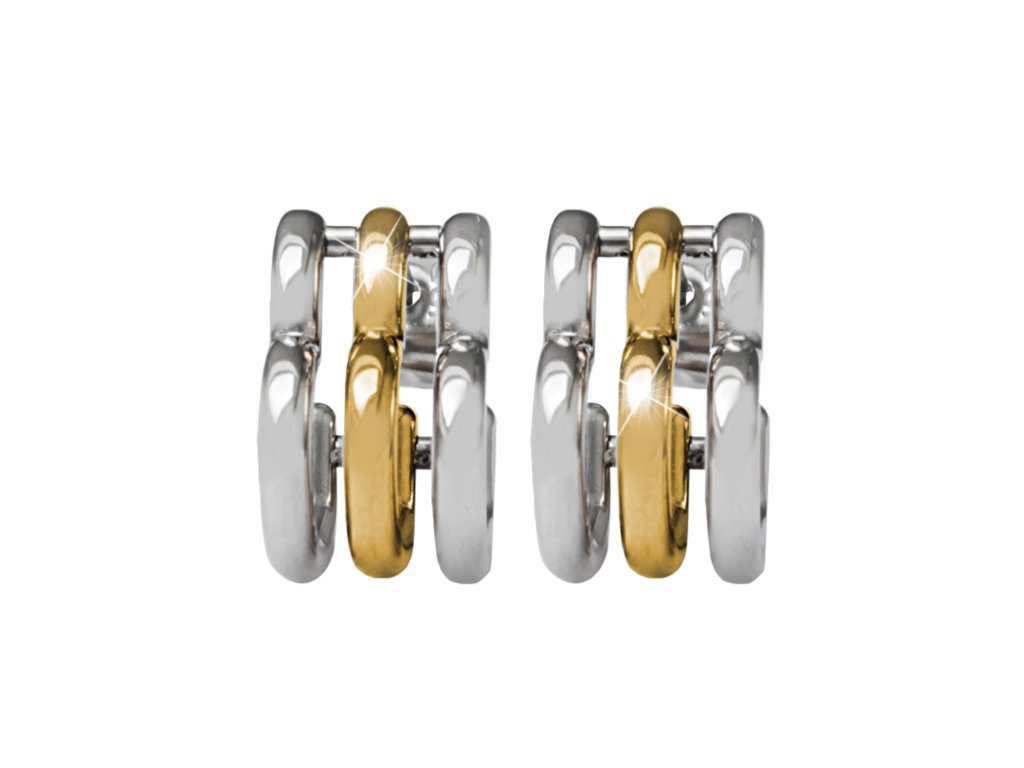 Zlaté ocelové náušnice puzety trojité srdce bez krystalů