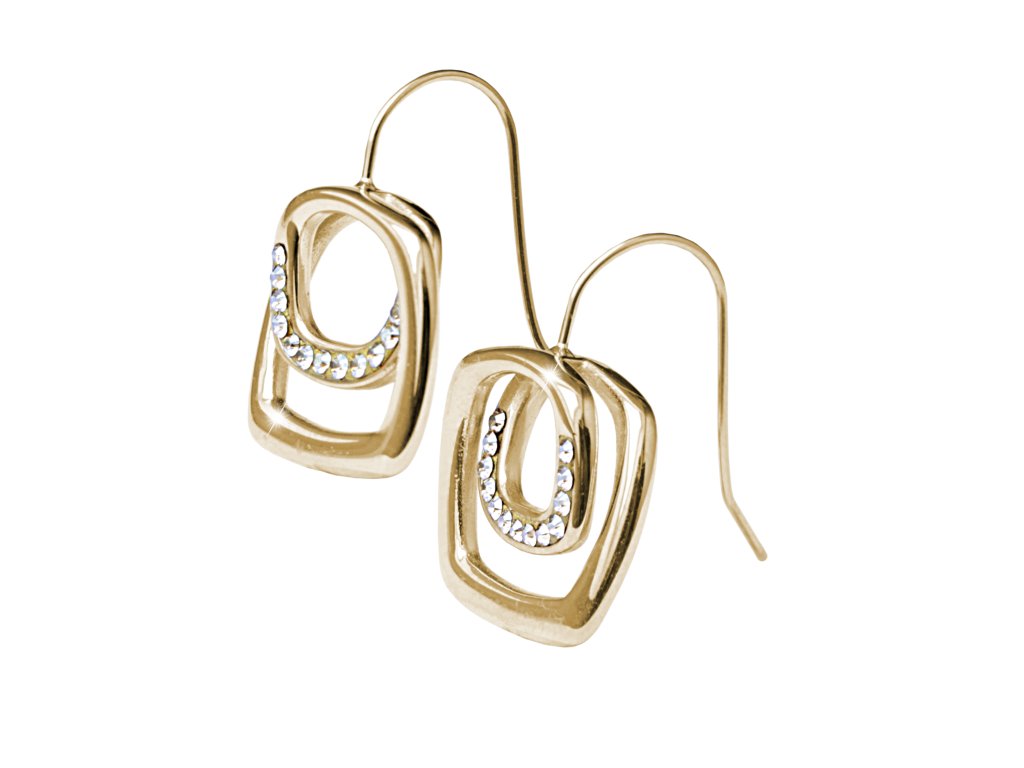 Zlaté ocelové provlékací náušnice dvojitý zaoblený čtverec s krystaly Swarovski Golden Shadow