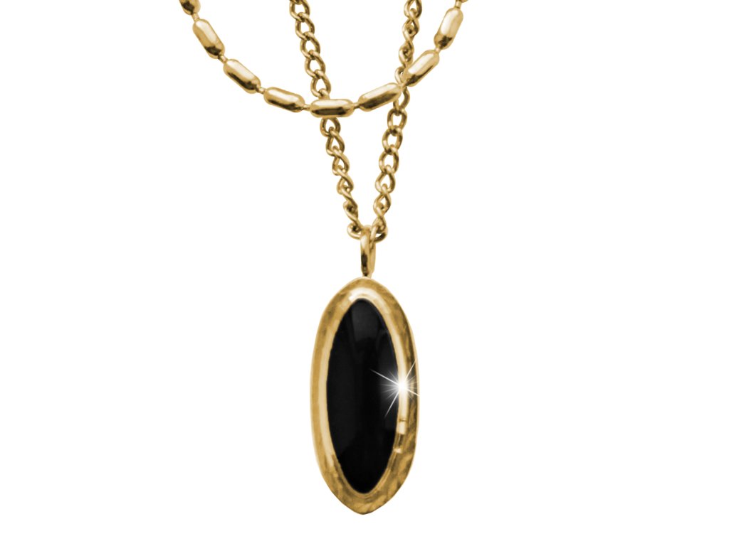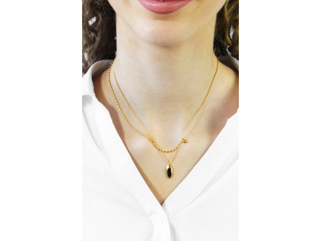 Zlatý ocelový náhrdelník dva odlišné řetízky s medailonem Black