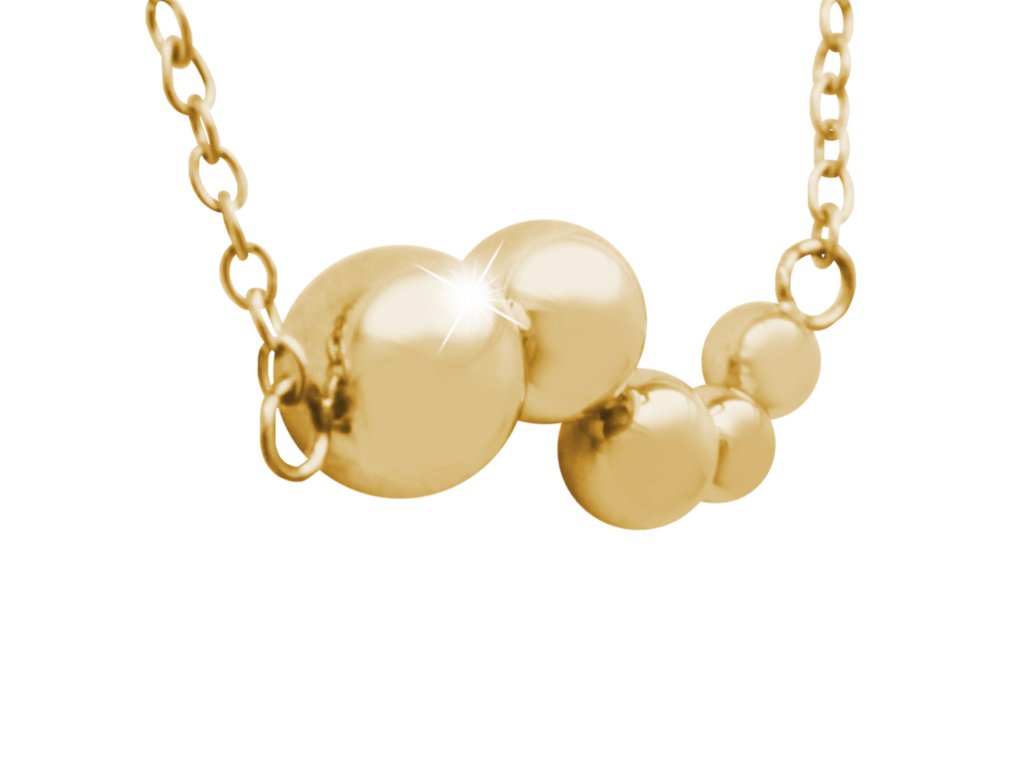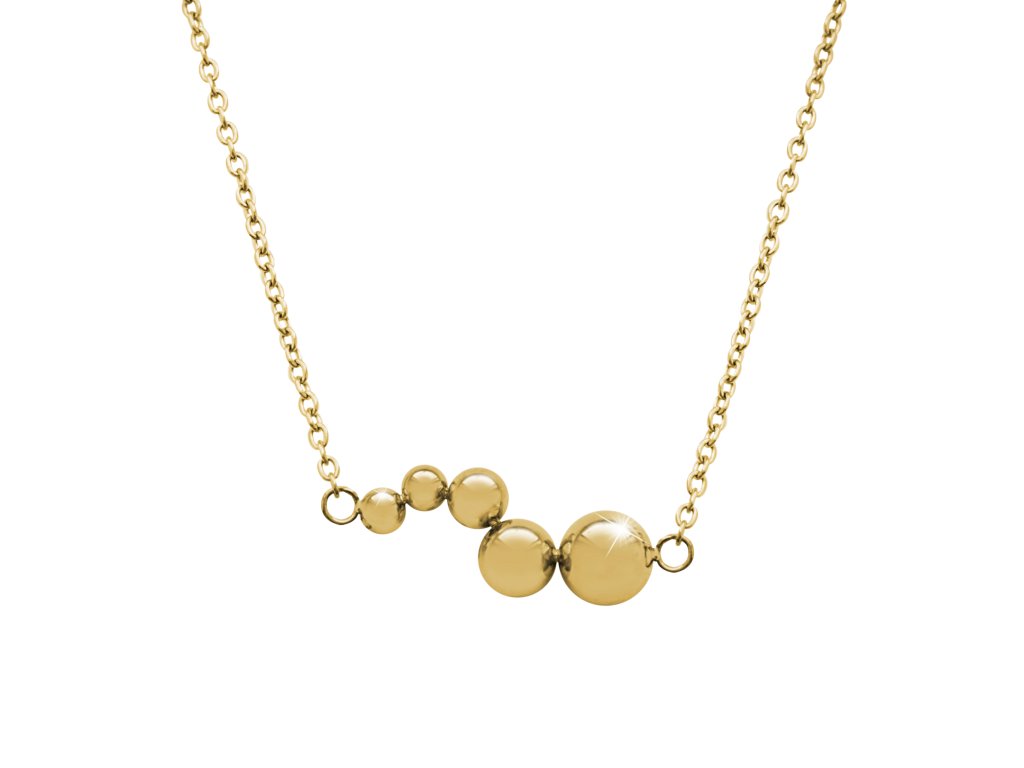 Zlatý ocelový náhrdelník poskládané kuličky různých velikostí