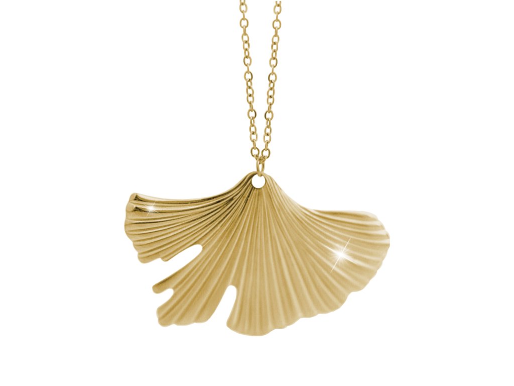 Zlatý ocelový náhrdelník velký list bez krystalů