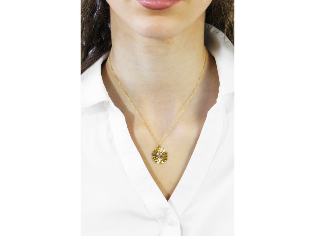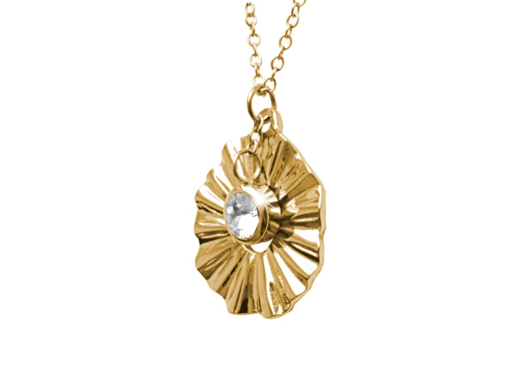 Zlatý ocelový náhrdelník vlnitý květ s krystalem Swarovski Crystal