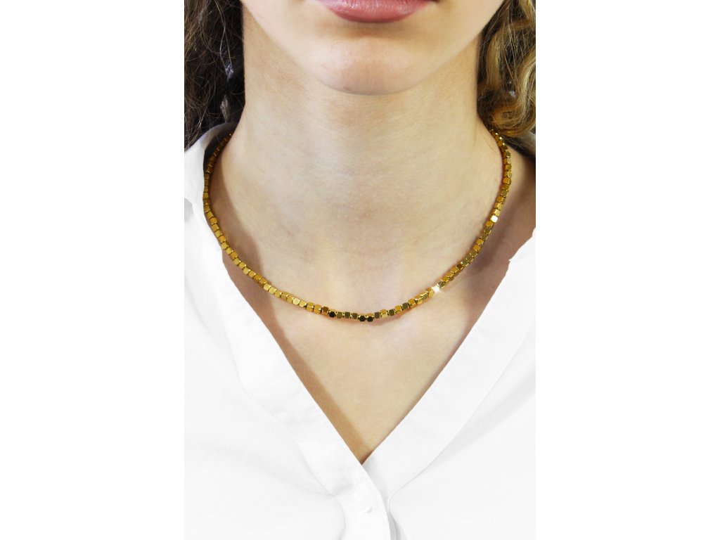 Zlatý ocelový náhrdelník z kostiček na řetízku