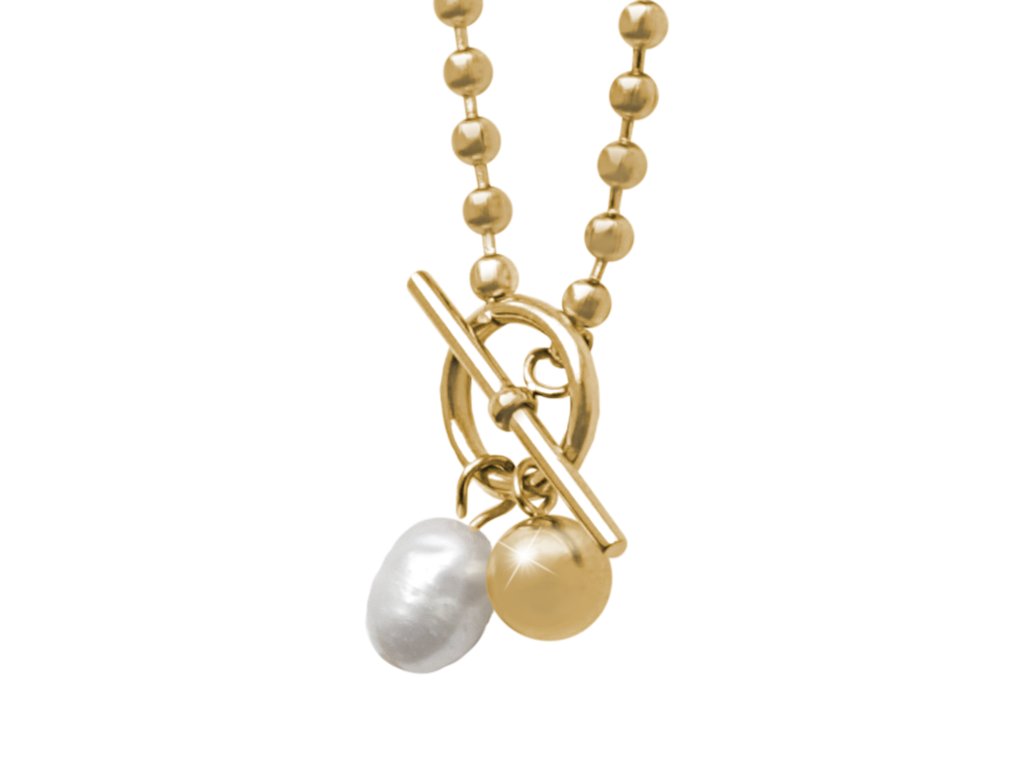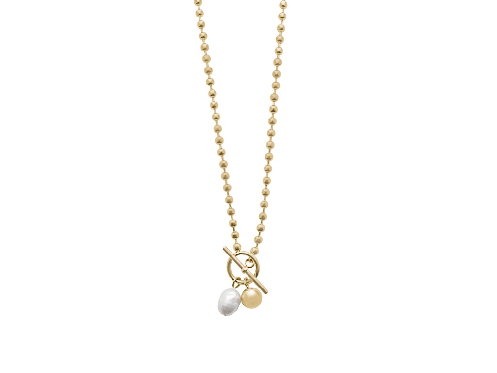 Zlatý ocelový náhrdelník z kuličkového řetízku s perlou White
