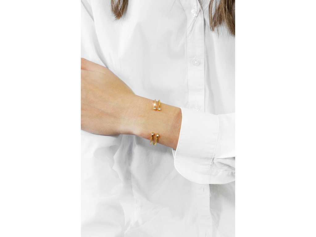 Zlatý ocelový náramek dvojitý na každém konci krystal Swarovski Crystal