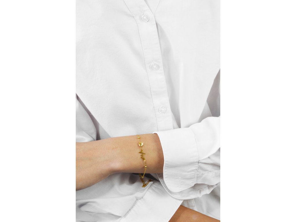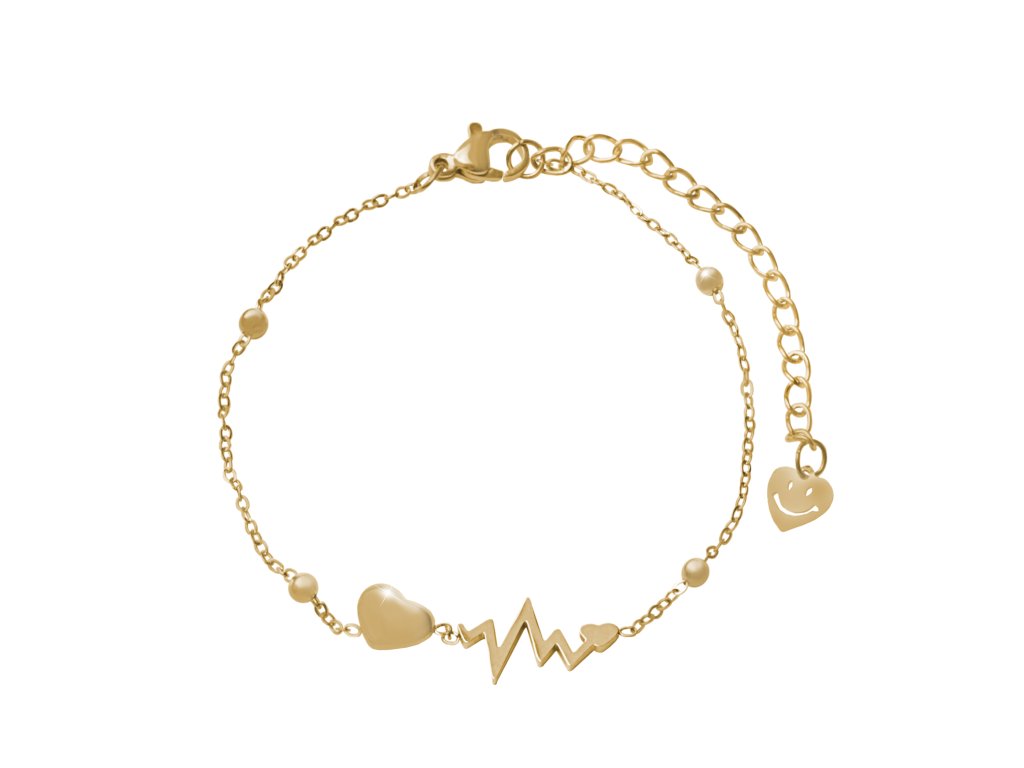Zlatý ocelový náramek puls srdce bez krystalů
