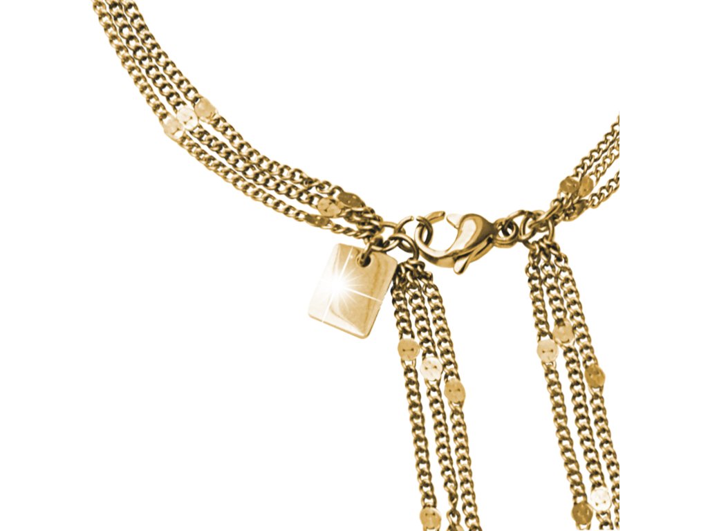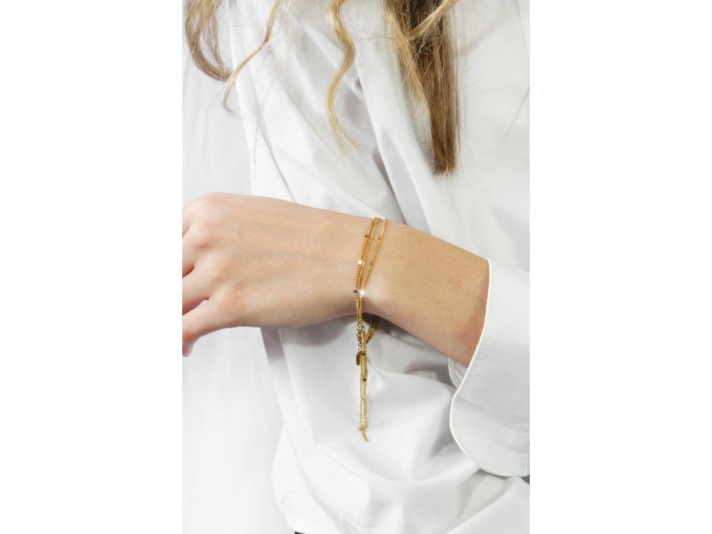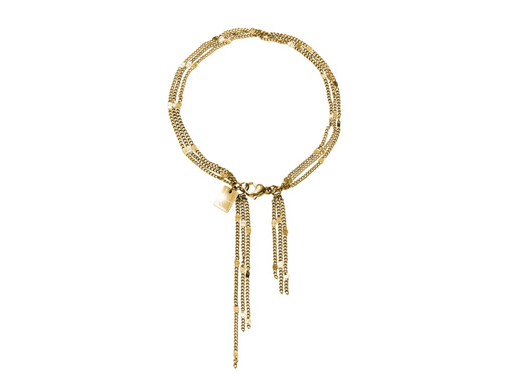Zlatý ocelový náramek z drobných řetízků se střapcem